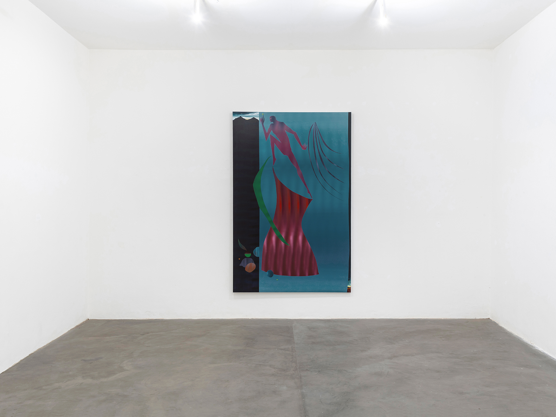 Entrambi sondano con la pittura ciò che sta oltre il visibile, cercano l’abbraccio del mistero, ma con due formule evocative distinte: il fare pittorico di Mattia è figurativo, attinge dall’immaginario mitologico e dall’estetica digitale contemporanea; una pittura multistrato con un impianto quasi grafico, nel quale si inseriscono mascherature – quinte che creano profondità e rompono l’unità dell’immagine. L’occhio rimbalza continuamente tra piani bidimensionali e tridimensionali, tra pattern che sembrano usciti da una stampante scarica di toner- lo spazio del sacro- microcosmi ricchi di dettaglio e di minuzie, sfere fluttuanti e apparizioni divine. Barbieri non lavora ad una singola tela, ma inizia più tavole contemporaneamente, e le affronta in modo diretto, senza disegni preparatori, come se ci andasse a svelare qualcosa che conosce molto bene. La pittura alterna i suoi temperamenti, cambia pelle, conduce lo spettatore verso un’esplorazione visiva che rimette costantemente in discussione l’identità della superficie.