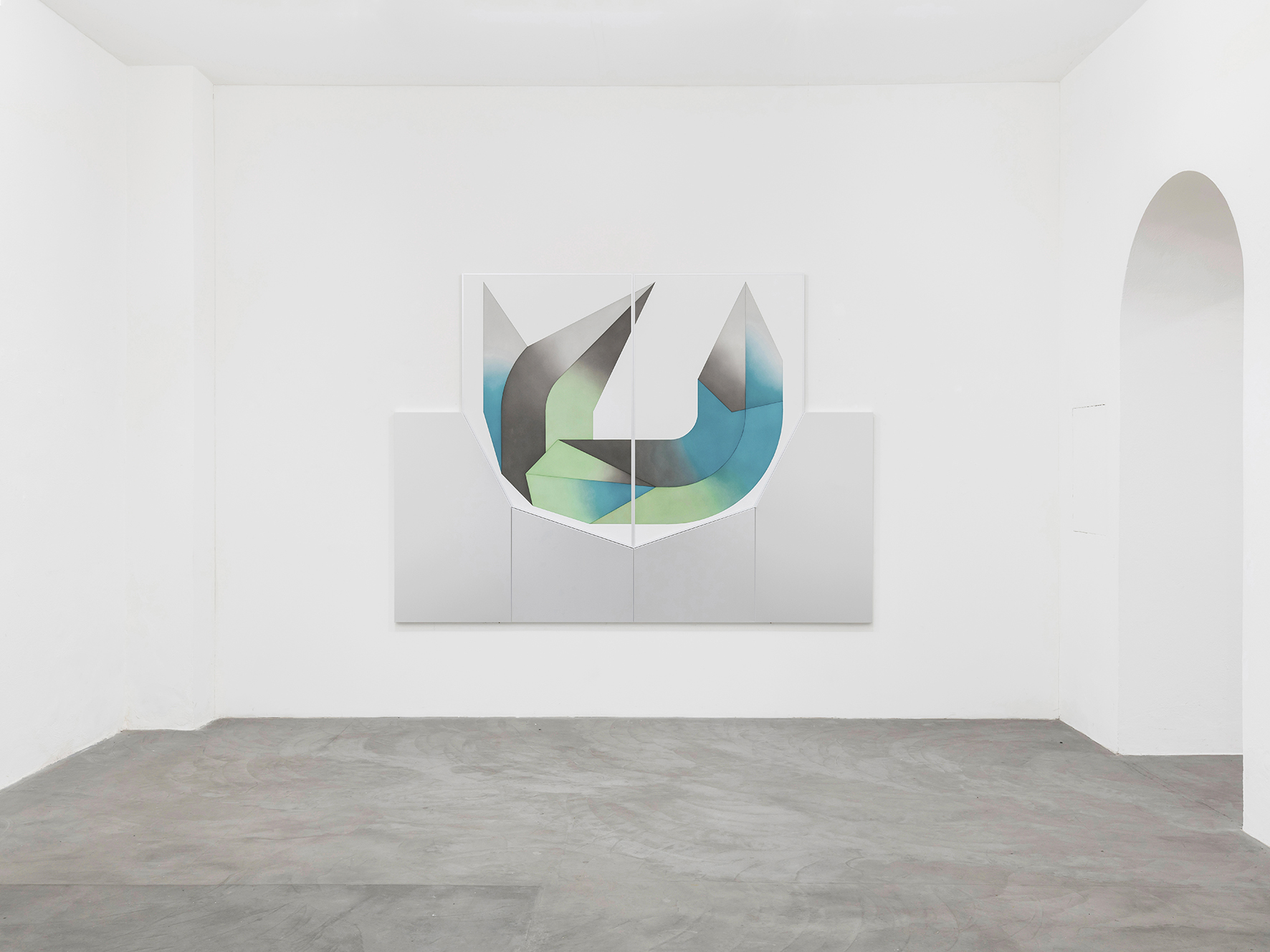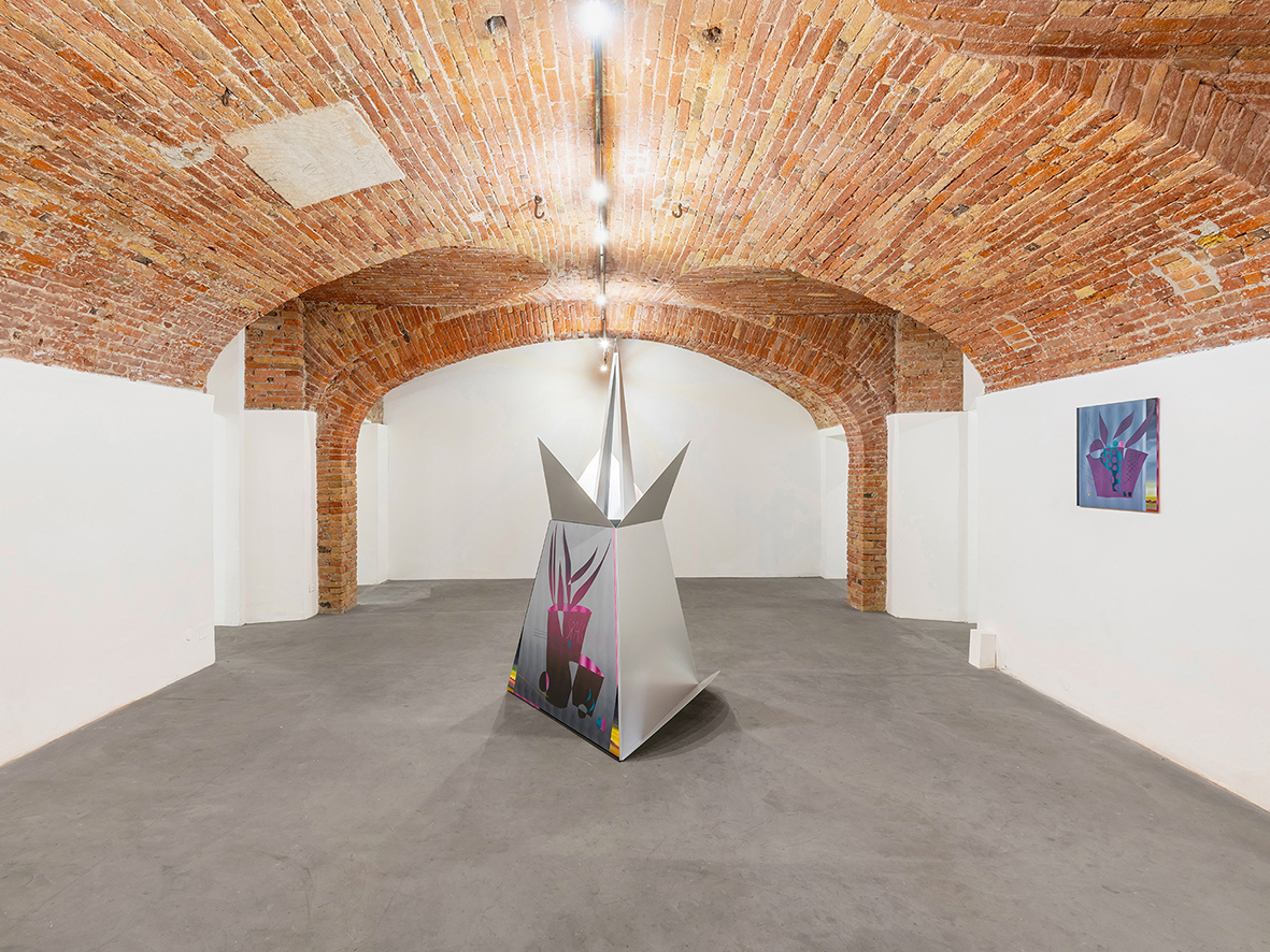 Allora spazio contemporanea diviene un corpo e lo Spaccacuore, situato nella sala centrale, il torace dello spazio, è il risultato dell’unione delle loro pratiche. Una installazione piramidale in alluminio a base triangolare, che ingloba una tavola pittorica, un lavoro a quattro mani, in cui per fare avvenire l’incastro bisogna prima incidere e liberare il cuore.