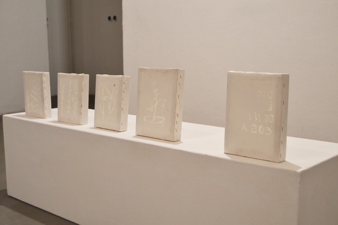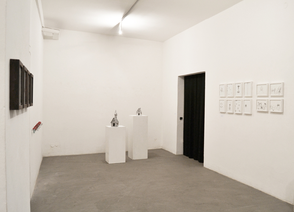 la piccola chiesetta dalle feritoie di lamette affilate. Il sottile foglio di alluminio viene sciolto per ricoprire le forme plasmate nel pongo, materiale malleabile e duttile con cui l’artista stabilisce un nuovo legame.