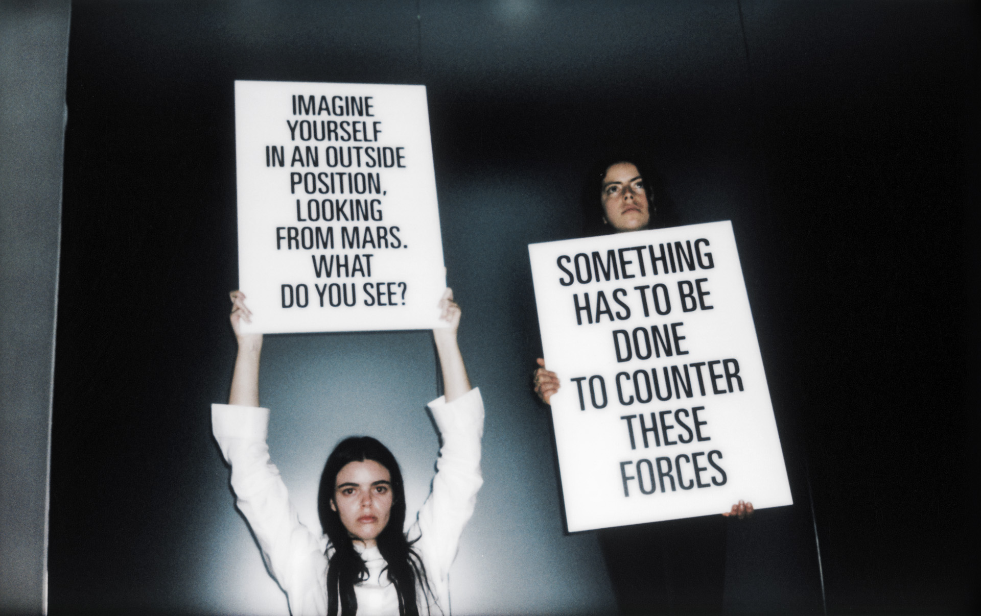 Nella ricerca di Marilisa Cosello l'immaginario del secolo scorso è aggiornato alla scena contemporanea, i riferimenti visivi al passato sono svuotati da significati storici, diventano nuovi territori in cui i protagonisti sembrano esitere solo in quanto parte di un disegno più ampio.